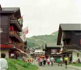 Bettmeralp is on a shelf above the Rhone Valley, known here as Goms or the Gomsertal. The village faces South-East & has splendid views across to peaks in the Pennine Alps. There is also some pleasant walking but, ideally, this is a centre for relaxation. Bettmeralp has developed 'suburbs' above & low the main street in recent years.
