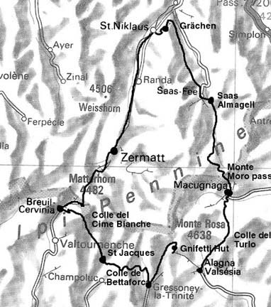 Ken Baldry's Alpine PagesMonte Rosa Rundtour - Map & maps required |