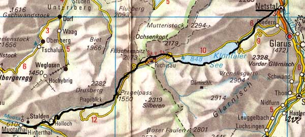 The purposes of this variation are: it avoids the long Klausen road pass (actually only half of it is road on foot); it allows the full Suvorovweg to be walked and you get to visit the very pretty Klontaler See on the Pragel Pass, although a lot of the Pragel is road.