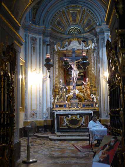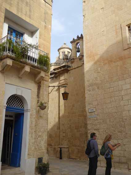 Dumped at the gate, we walked round Mdina, starting with the cathedral & museum (€5 each) after a short wander along narrow streets (but they still allow, presumably residents, cars in). Then, to the Carmelite Convent, which is much darker inside & to Fontanella Tea Garden, which has an enormous view back towards Valletta. We explored more narrow streets & took the coach back to Valletta at 12:40.
