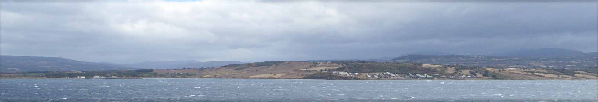 Laundry first. It was rather hard to walk on deck because of the wind & it was much colder, justifying a fleece. At about 11, we approached the Dardanelles & were close enough inshore to photo the two war memorials, although it was very hard to take pictures because of the gale. Right: The Commonwealth War Memorial |