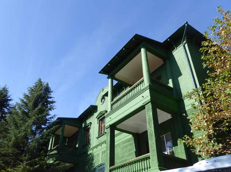 Up at 07:15, as they allowed half an hour from the Neptune Lounge to the bus. Mistake! Sochi Immigration took a whole hour to check us through, despite having a lot of desks. This is totally unnecessary & it took us less time to get into the Soviet Union 31 years ago. We had a tour to Stalin’s Dacha, the choice of tours not being brilliant but this was an interesting green-painted building (for camouflage) not much bigger than “The Wick” (the house we once had in Pyrford). The view was great. The construction inside was all wooden panelling. There was a waxwork of Stalin at his desk & a remarkably small swimming pool. It was all quite delightful. Two extra wings had later been added (it was built in 1937) to turn it into a hotel. Otherwise, there had been two separate buildings.