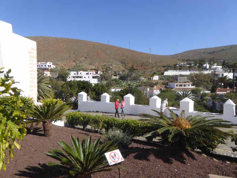 Then, on to Betancuria, the original capital before they moved it to the more practical Porta de Rosario. We watched a vast width slide show of the island & went round the church. No working loos, here or at the next village with an open church.