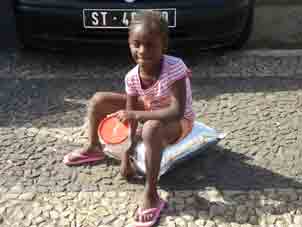 I got up at 0620, a bit too early, for the sail in. The Sun rises very quickly down here. Some people could see flying fish but I could not. There was a school of dolphins visible, though, apparently breakfasting on the flying fish. We picked up the pilot at 0710 & I went in for breakfast. We were among the first off the boat. There was a sort of ramshackle market near the port & a lot of importuning taxis but we walked the two kilometres into the city, along a cobbled road with a badly maintained cobbled pavement & a concrete sea wall, which had eroded to show the reinforcing. However, after we had crossed the bridge over the river, now a trickle but obviously liable to flash floods, & were halfway up the ascent road to the city proper (or old town) on the Plateau, things improved. We had passed several women with loads on their heads, mostly of fruit & veg & while some greeted us in Portuguese, most looked at us suspiciously. Maybe, their brothers were taxi drivers!