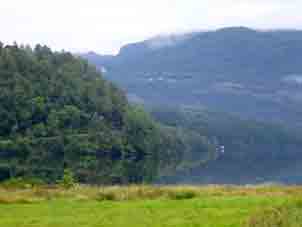 We went up into the hills between the Bjornafjorden & Hardanger to a lake with a building museum, run by an old Troll lady in her take on national dress, who served hot drinks.