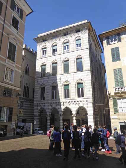 A glorious day, unlike yesterday but it rained solidly in Genoa then. We took the shuttle into the port side of the Old City, which is arcaded here & had a coffee. Then, we went round by the Palazzo San Giorgio & up the Via San Lorenzo which seems steep & takes one 1st to the Cathedral of San Lorenzo