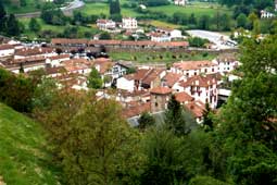 At one point, we saw the path coming in from the side with walkers who turned out to be Australian & confirmed (I asked if they were on the 'Jim walk') that they were on the way to Santiago de Compostella, very muddily. We stopped at Roncesvalles, which is tiny &, as it turned out today, very cold, so we had coffee. The top of the pass is not much further & even colder. I got out & was photoed by a Dutch cyclist by the phony Roland memorial.