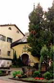 We walked round to her charming house, where there were more paintings, the interiors set in the original interiors. A high point of the trip. I took photos of anal Murnau centre, then we drove off to Garmisch, Avis' idea & booked into the Hotel zur Post for our last two nights. We had excellent dinners (Avis lamb, me Cordon Bleu) in the Gastehaus Alpspitze in the Sonnen(!we should be so lucky)strasse, with a free schnapps thrown in, all for DM51.20 (£17.30). There is nothing charming about Garmisch, as far as we could see. |
