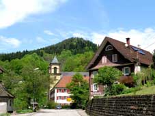 Just outside the town is a green road which runs down rather mountainously, to Wolfach, past the monastery village of Bad Rippoldsau (right). We stopped in OberWolfach at the Hotel 3 Könige for a splendid lunch with big, fat asparagus, E37.30 with tip. |