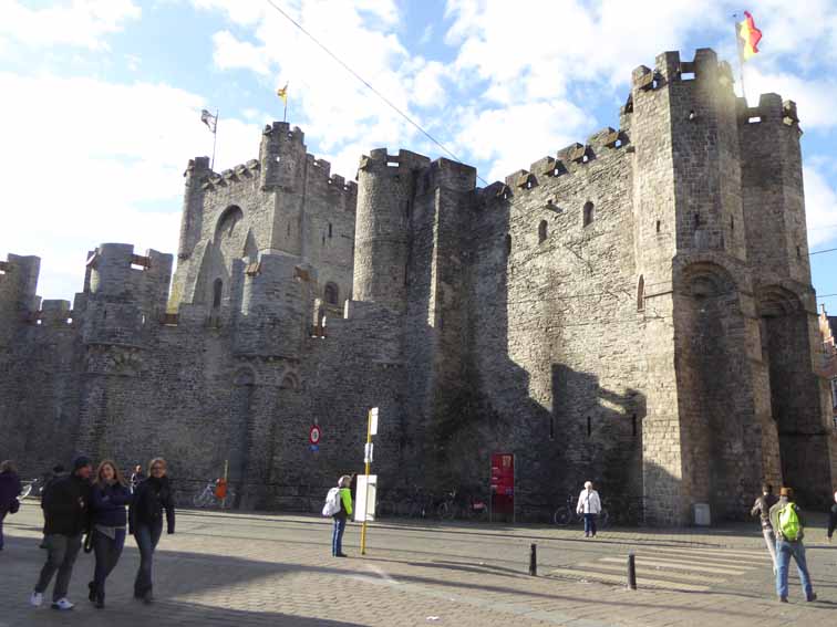 At Ostend, I turned off onto the motorway to Gent (that's how they spell it), which was quite a dense experience but I did stop & ask a young man who gave me imprecise but correct information & just managed to spot the Hotel Ibis opposite the cathedral. I had to go the wrong way up a one way street to get to its garage. I had not known there was one, as booking.com said there wasn’t. Normal Ibis room. We asked the reception girl which way to walk & did so. We stopped for a coffee in the square outside St. Baaf’s Cathedral, which was in scaffolding. The coffees were tiny, though.