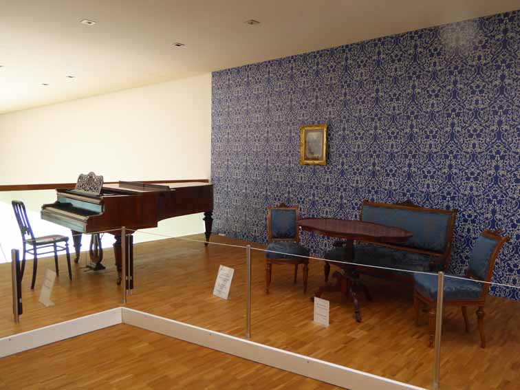 We were done in time to contemplate going to Raiding for Liszt’s birthplace, which used to be in Hungary but is now in Austria, just. Back almost to Eisenstadt & down a motorway & the four lane S31, we found it easily. The outbuildings were destroyed in WWII but the main part of the house, at least the three main rooms, survives & has been better looked after since the photo in my lecture. The organisation was a shambles owing to lack of staff. A not-very-helpful girl in the office & an extremely helpful guy who was over-stretched & had to keep running (literally) between the concert building & the house.