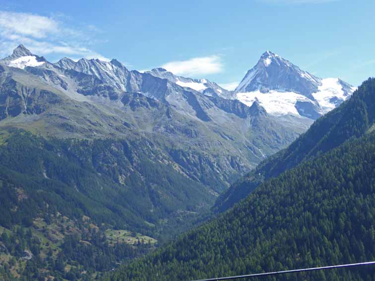 We turned up from Visp to Täsch, which is as far as a private vehicle can go, parked & took the train up to Zermatt, where we had booked into the Hotel Bristol on this link, the last one Ken had used there. It is very nice. We had dinner in the hotel but coffee in the Hotel du Pont near the church, an atmospheric old watering hole in which we had interesting conversations in English & German every evening we spent in Zermatt.