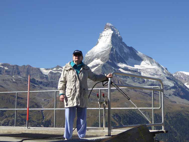 Fortunately, Tuesday was a brilliant day. We went up to Sunnegga, where it proved that Avis was not up to walking to Tuftern, the next village but there were photos to be taken! (Ken has all these from previous trips but not so good resolution).