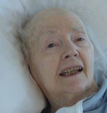 for a pee but kept struggling to grab & pull on the Zimmer for at least 10 minutes. Ken got up to help, with the consequence that Avis slid down onto the floor.